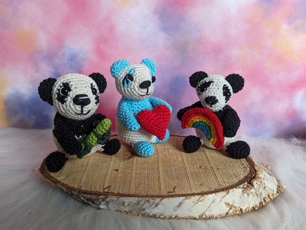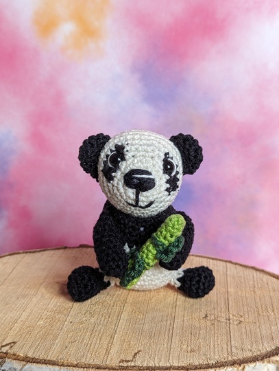 Der Panda wird mit Nadelstärke 2.5 etwa 6,5 cm breit, 7 cm lang und 9 cm hoch.