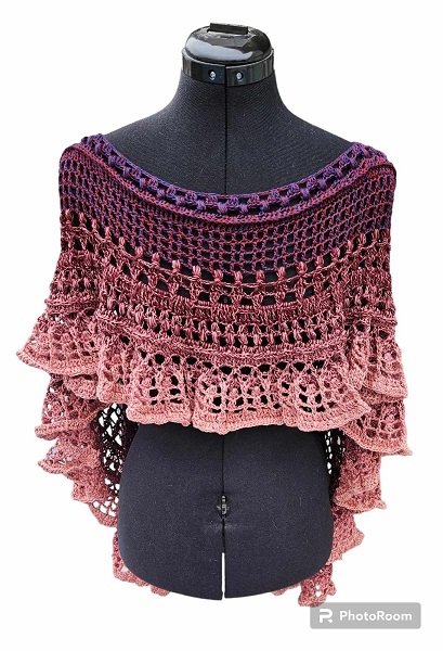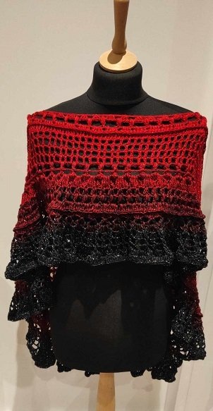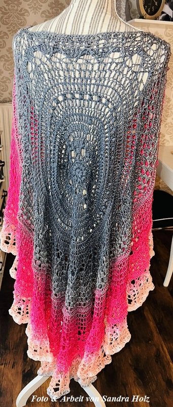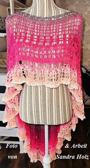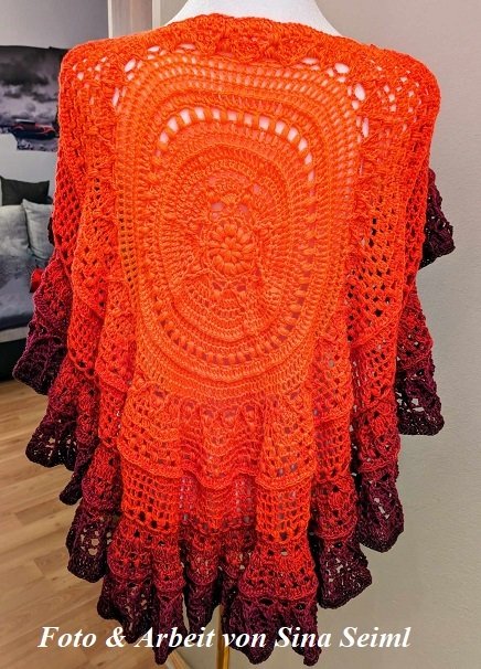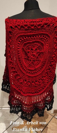 Dieser Poncho wird im Kreis gehäkelt und durch den Halsausschnitt, bekommt der Poncho den vokuhila Stil.