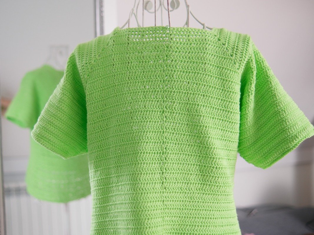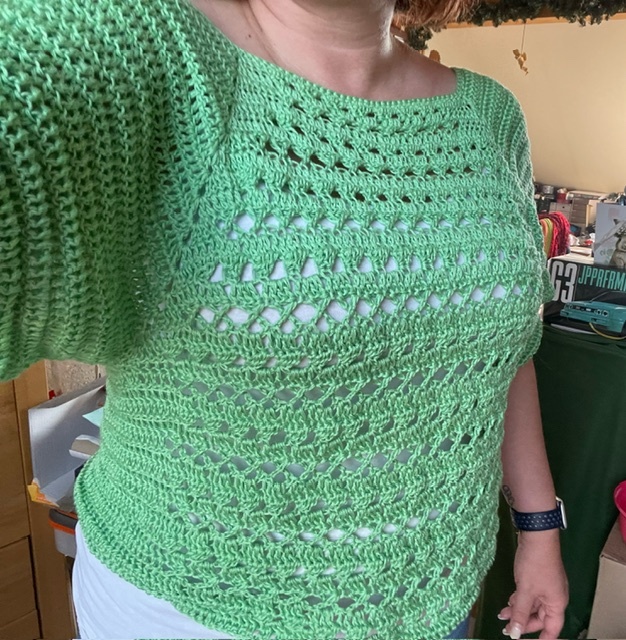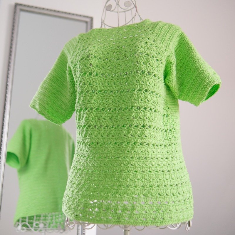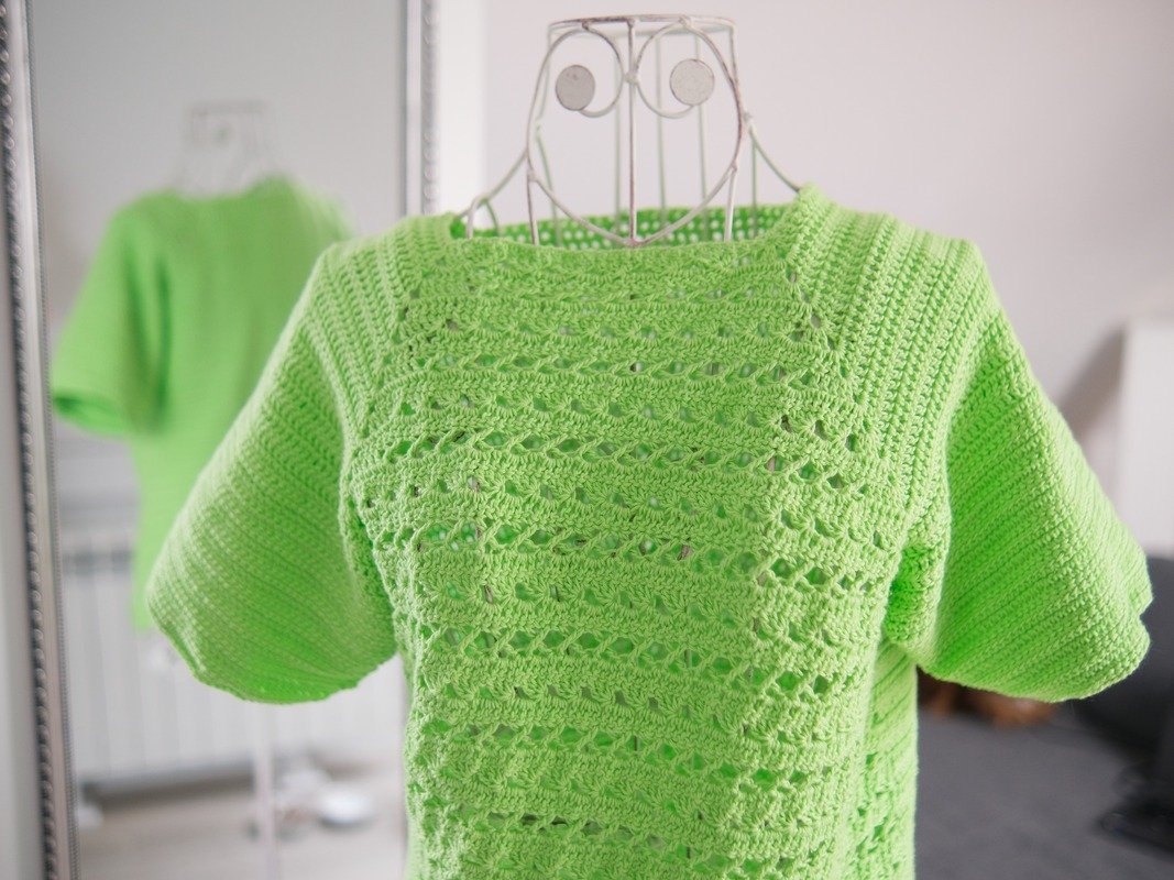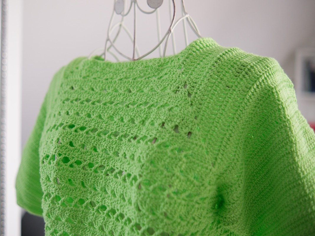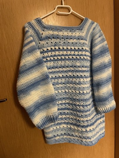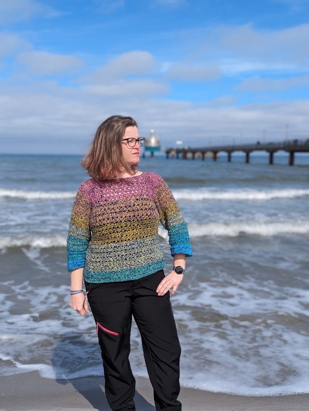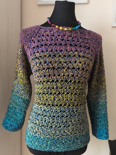 Hier erwirbt man lediglich die Anleitung zum Häkeln des Pullovers "Sunrise", kein fertiges Kleidungsstück.