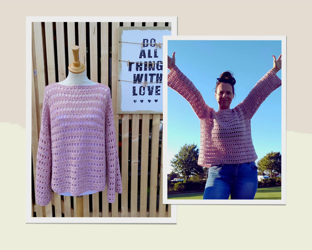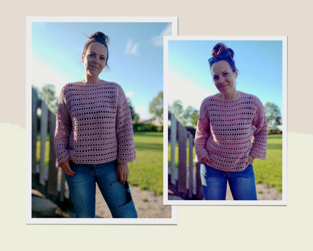 Der Sweater kann in 8 verschiedenen Größen (36 - 50) und 3 verschiedenen Längen nachgehäkelt werden. Eine Tabelle ist in der Anleitung eingefügt, sodass du dich einfach daran orientieren kannst. Ebenso kann jedes Garn verwendet werden.