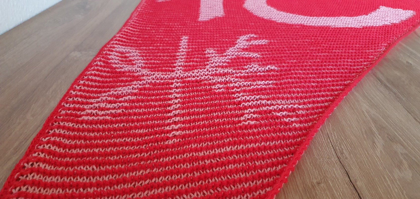 Das fertige Tuch hat bei mir eine Größe von etwa 170cm (Breite) x 78 cm (Tiefe).