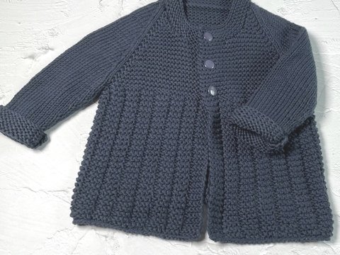 Falls man eine größere Größe braucht, kann man mit einer dickeren Wolle und einer größeren Nadelstärke stricken, dann wird die Jacke dementsprechend größer.
