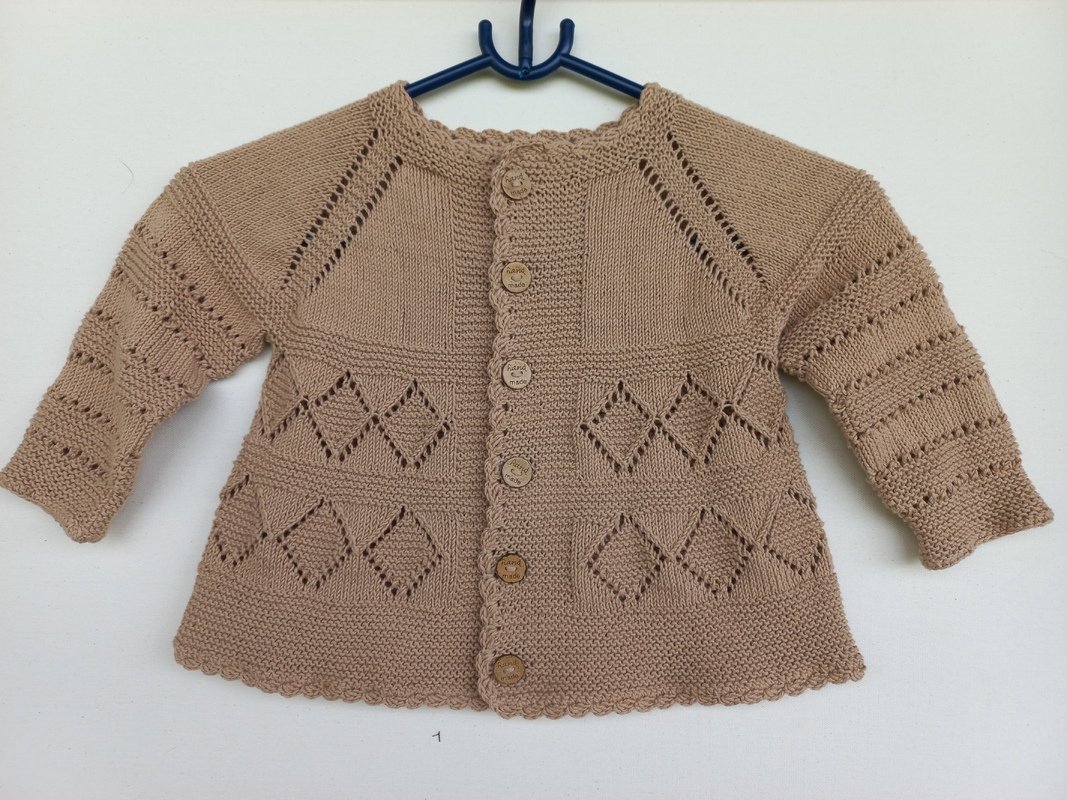 Hier bekommst du eine bis ins kleinste Detail erklärte 19-seitige Strickanleitung in deutsch für eine wunderschöne Babyjacke/Mädchenjacke mit einem tollem Lochmuster.