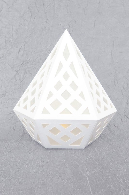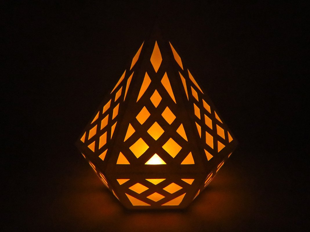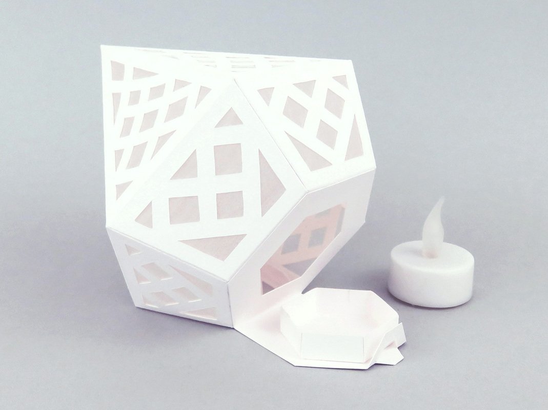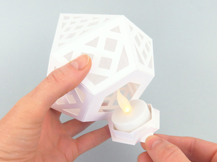 Um diese Leuchte nachzuarbeiten, sollst du mit Schere und Cutter umgehen können, wissen, wie man Faltlinien einprägt und Grundformen faltet. Auch sollst du bereits mit Klebstoff gearbeitet haben.