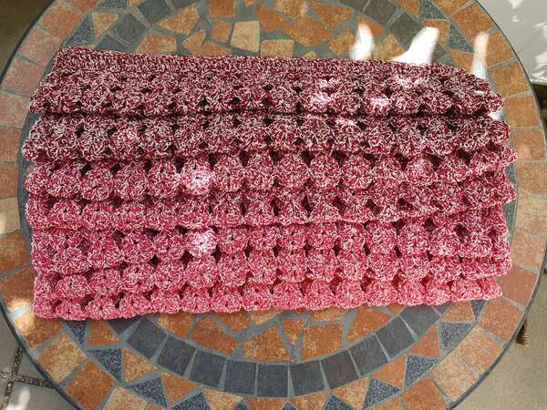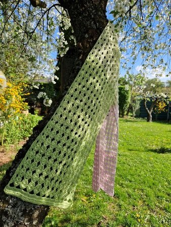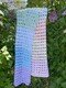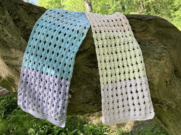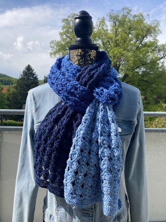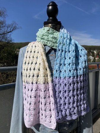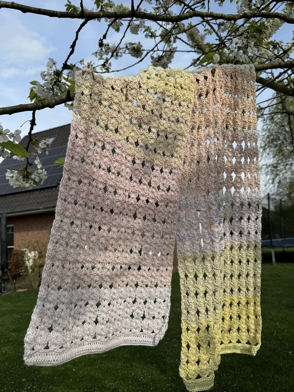Der Schal kann in beliebiger Größe gearbeitet werden. Eine übersichtliche Tabelle mit Richtwerten zu den Schals der Testhäkelgruppe ist in der Anleitung enthalten.