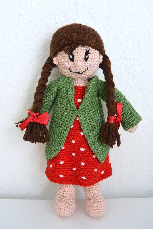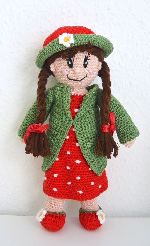 ... diese Puppe bietet viele Möglichkeiten: als lustiges Mädchen im Punktekleid, mit (kurzem oder langem) Mantel, mit Hut und Schuhen im Erdbeerstil ....
