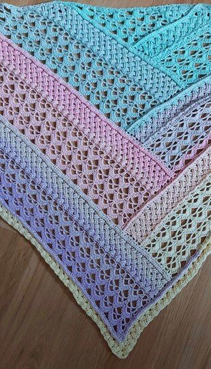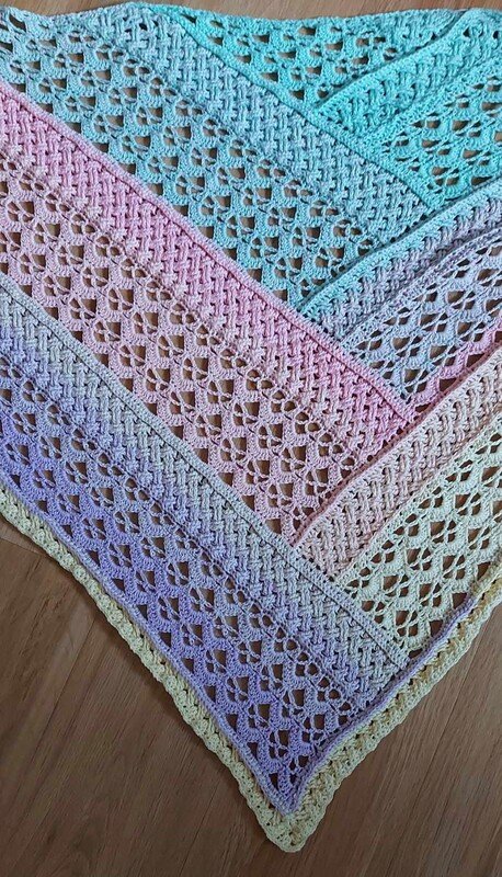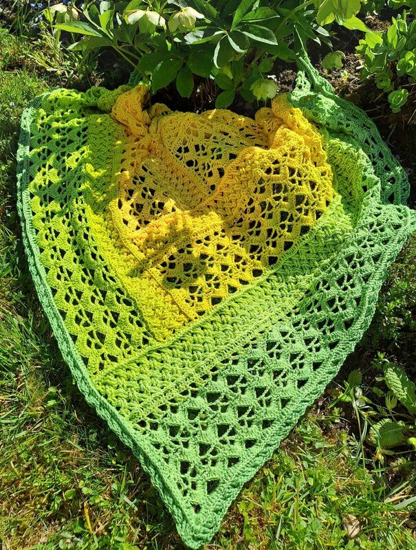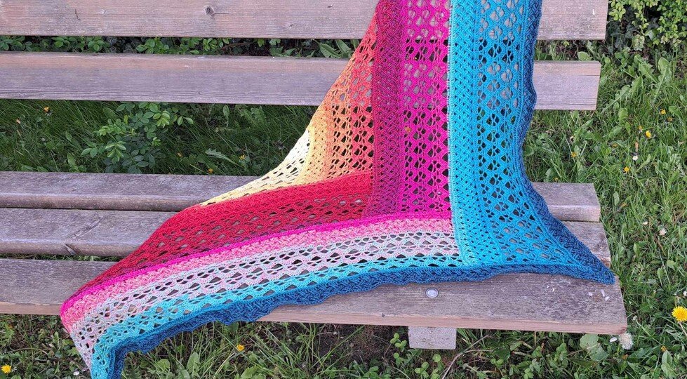 Das Tuch kann in jeder beliebigen Größe gehäkelt werden, da sich die Reihen wiederholen.