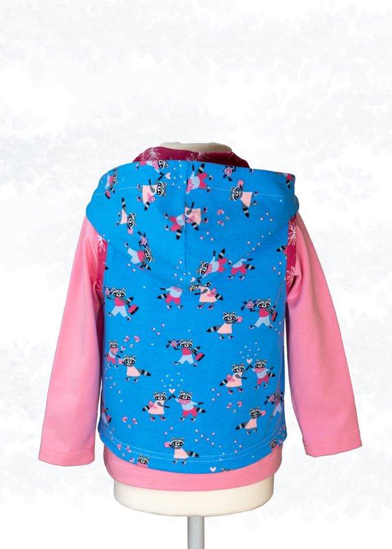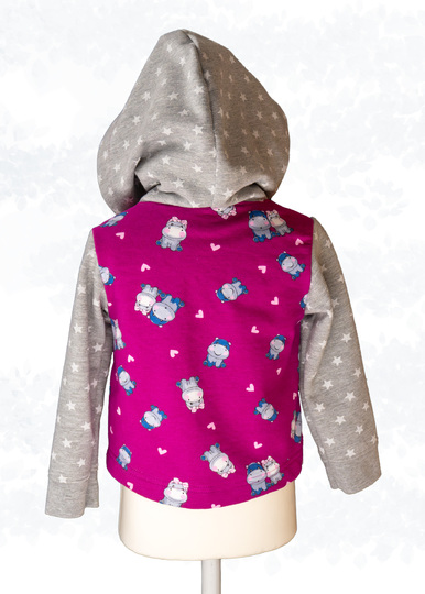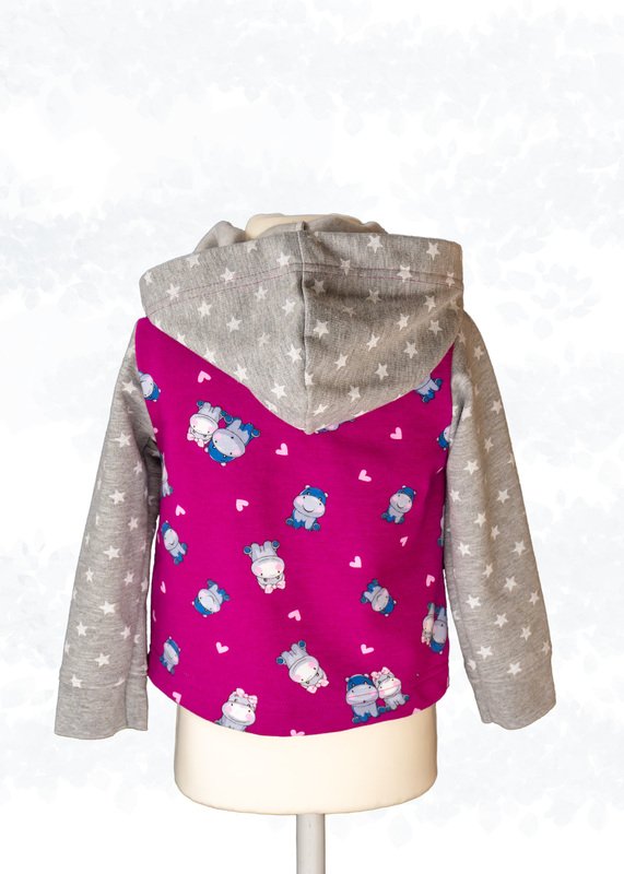 Das Modell “Cassie Kids” ist eine Sweatjacke bzw. Sweatweste mit Kapuze für Kinder. Die Jacke/Weste ist hüftumspielend und kann mit verschiedenen Verschlüssen genäht werden, wie Knopf- und Knopfloch, Druckknöpfe oder Klettverschluss. Sie ist anfängerfreundlich, da sie keine Reißverschlussverarbeitung hat. Die Jacke hat eine bequeme Weite.