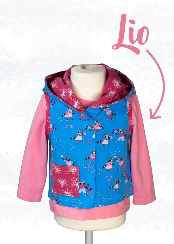 Zum Verkauf steht ausschließlich das eBook mit Anleitung und Schnittmustern von der Jacke und Weste. Das Kindershirt Lio ist nicht enthalten. Die Bilder zeigen genähte Beispiele.