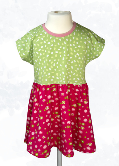 Entdecke das Modell „Evina“ – ein lockeres Sommerkleid und Shirt mit angeschnittenen Ärmeln und weitem Rockteil für Kinder. „Evina“ hat eine Teilung in der Taille und kann wahlweise mit einem Taillenband genäht werden.