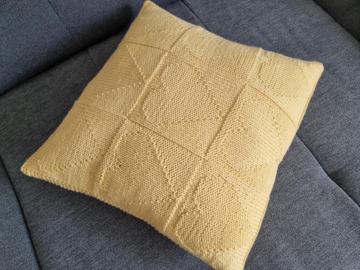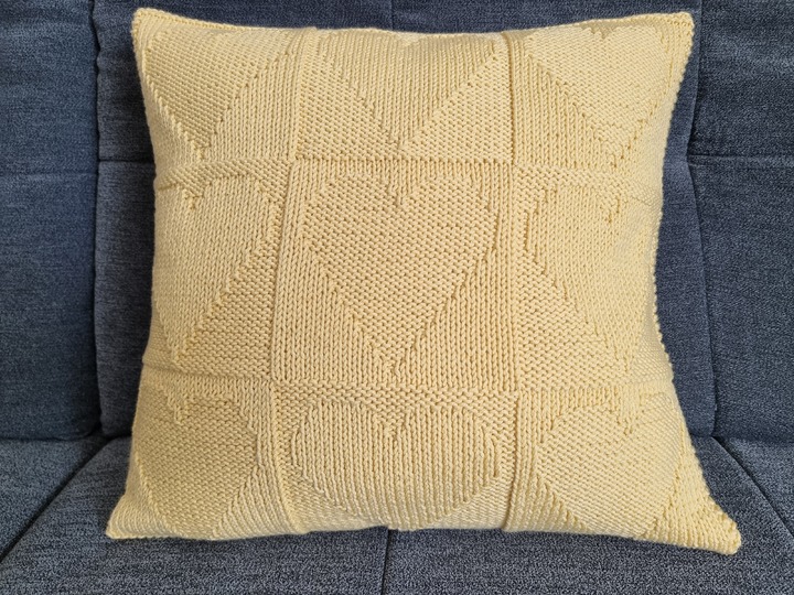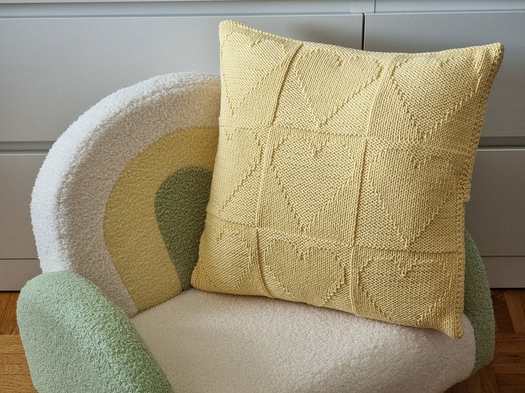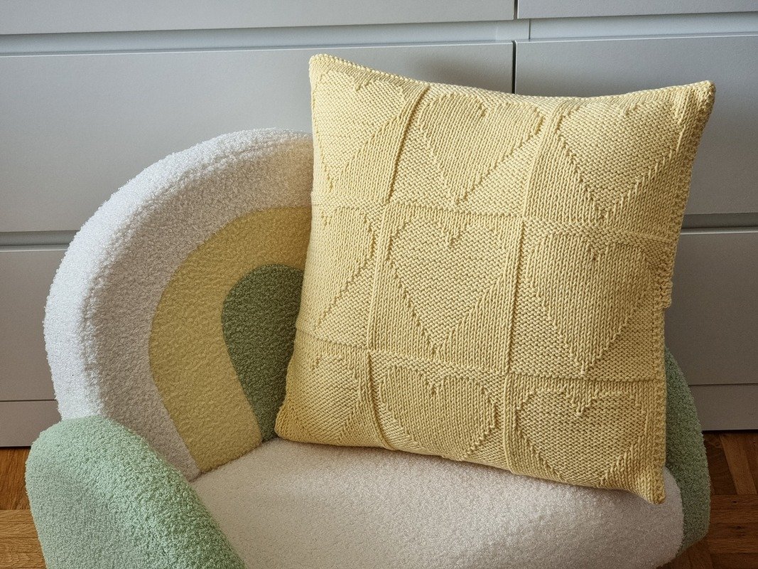 "Golden Heart" dieser dekorative Kissenbezug für Kissen von 40 x 40 cm ist auch einfach und schnell gestrickt.