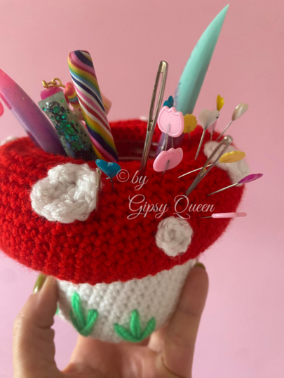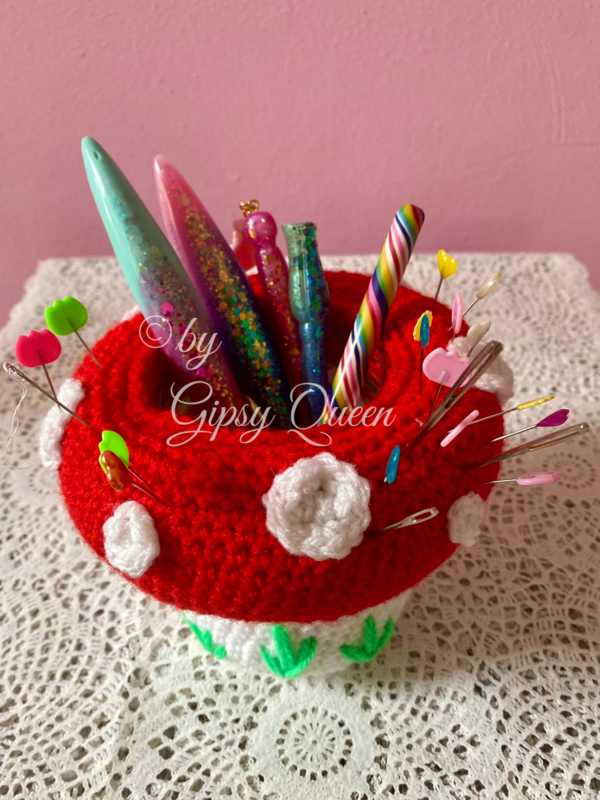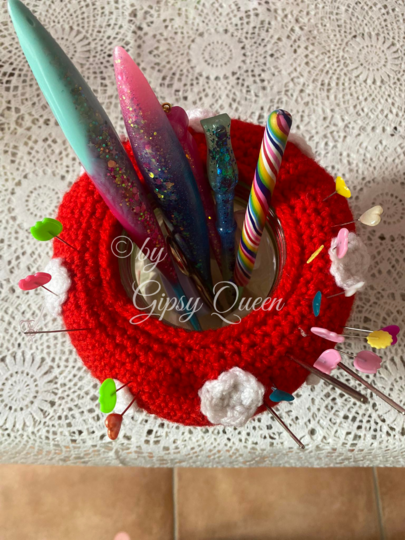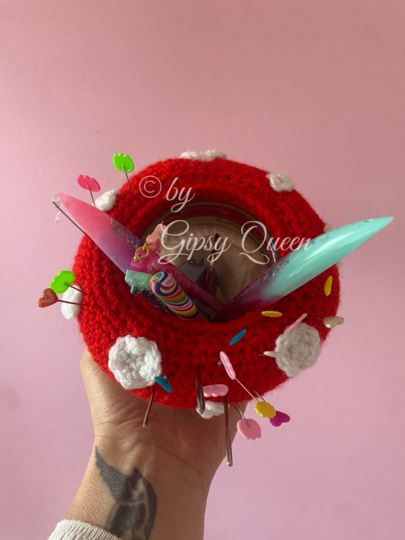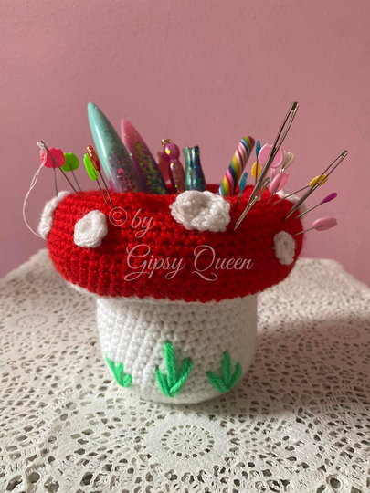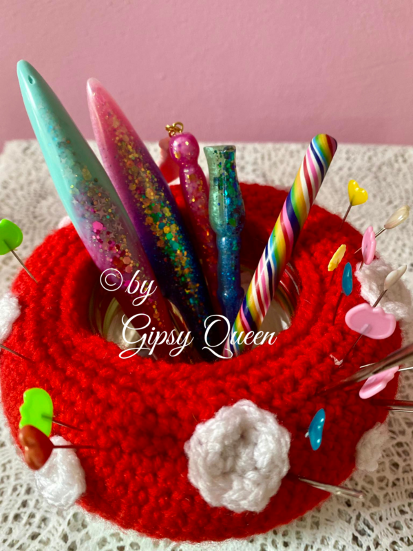 der fertige Pilz Überzug passt an ein Glas mit einer Höhe von ca. 8 - 10 cm und einem Durchmesser von ca. 6 - 9 cm
