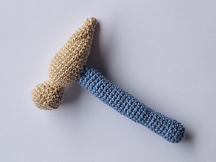 Daher mein Sohn jetzt in einem Alter ist, wo das Werkzeug von seinem Vater interessant wird, habe ich mir gedacht ich häkel ihm einfach nach und nach sein eigenes.