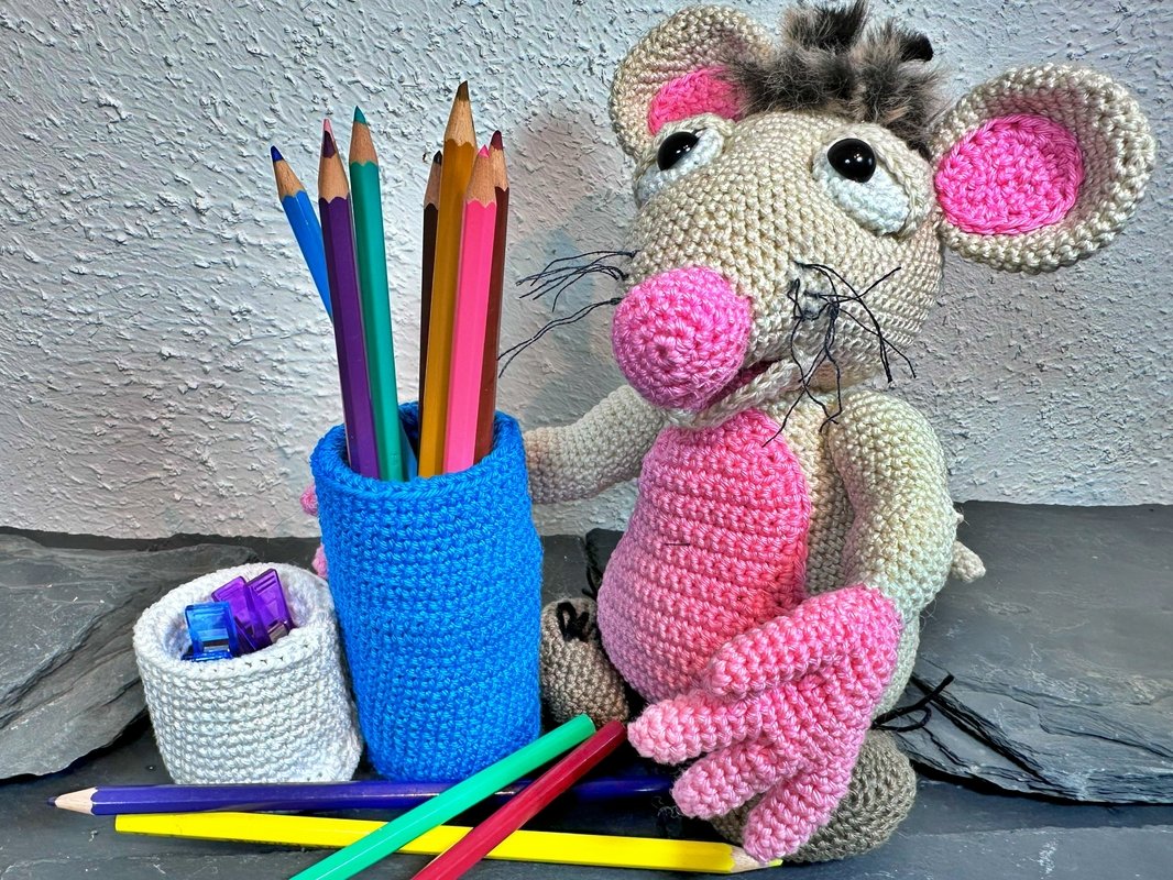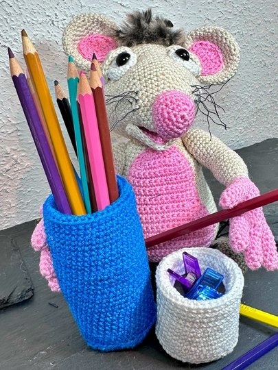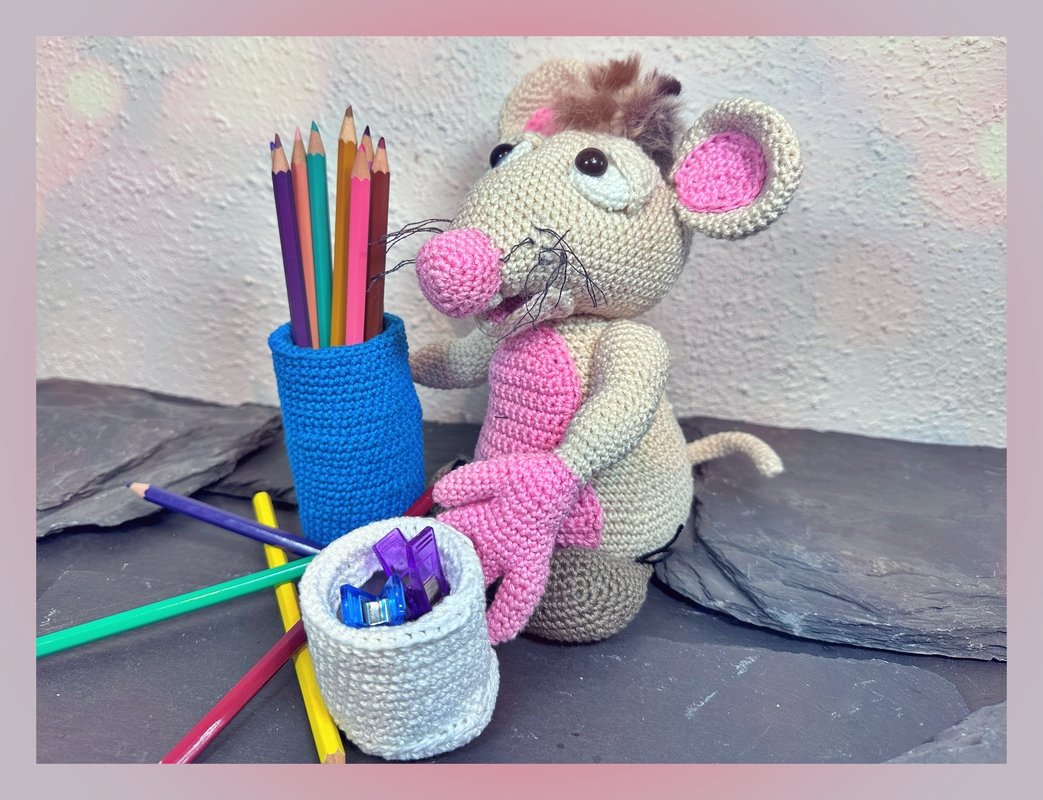 Ihr kauft hier eine Häkelanleitung als PDF zum nacharbeiten der Maus Berthold. Die Süsse Maus Berthold ist perfekt zum Schulanfang. Er sitzt auf dem Schreibtisch und hält Ordnung. Die Halter können beliebig vergrössert oder vermehrt werden. Berthold sitzt auch gerne in der Küche (Kochmütze wird in einem späteren upgrade dazugegeben)