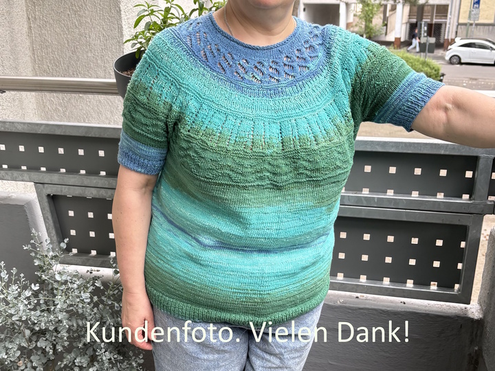 • Ihr könnt auch 4-fädiges Farbverlaufsgarn benutzen (LL 375m auf 100g)