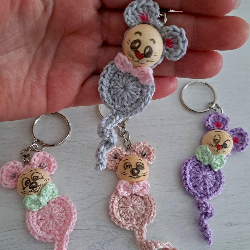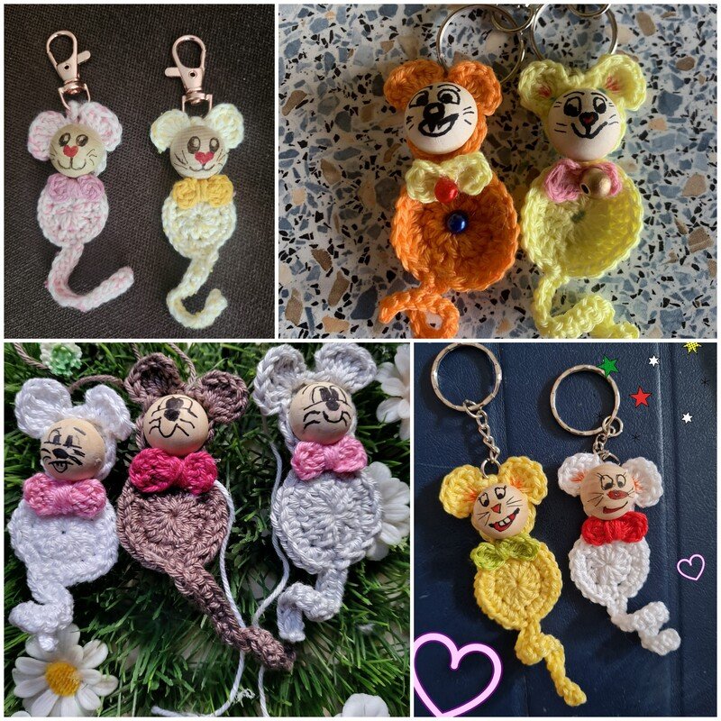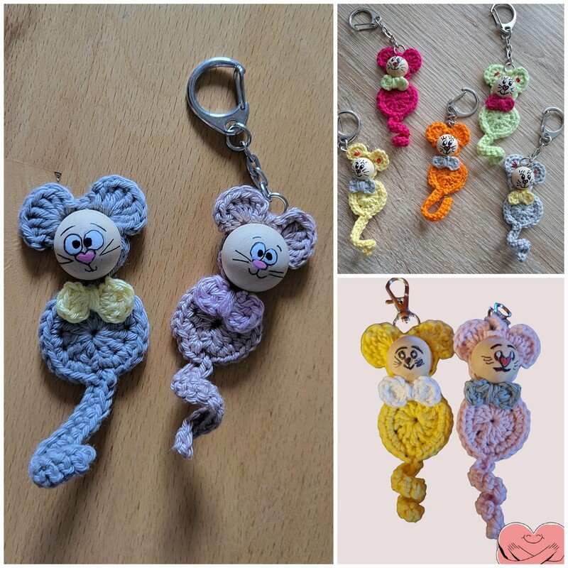 Süße kleine Mäuse als Schlüsselanhänger, Taschenbaumler, auf ein Magnet geklebt (Kühlschrankmagnet), Blumensticker u.s.w.