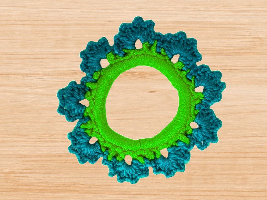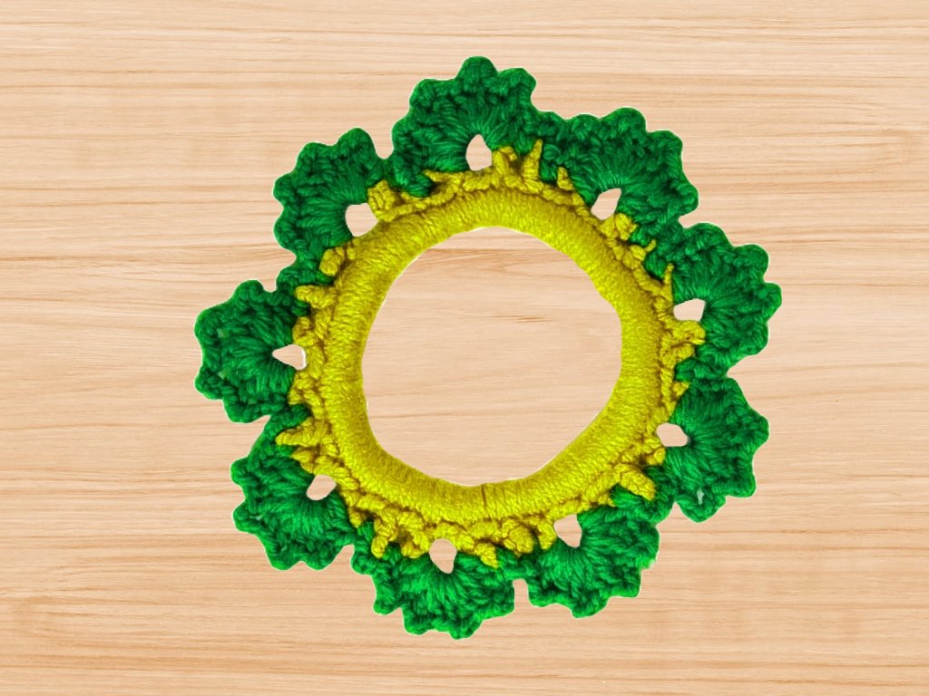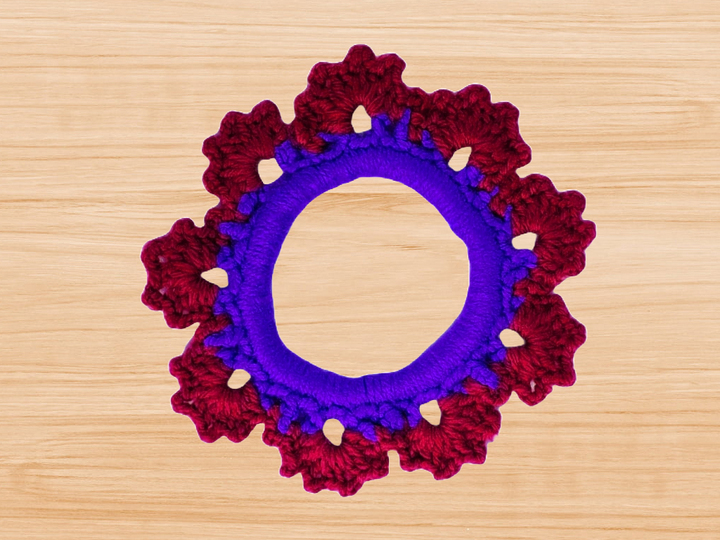 Es wird erklärt: 3 Häkelanleitung für Haargummi Seiten, Beschreibung, Abbildungen.