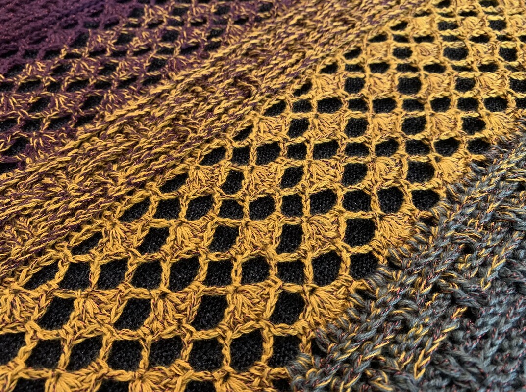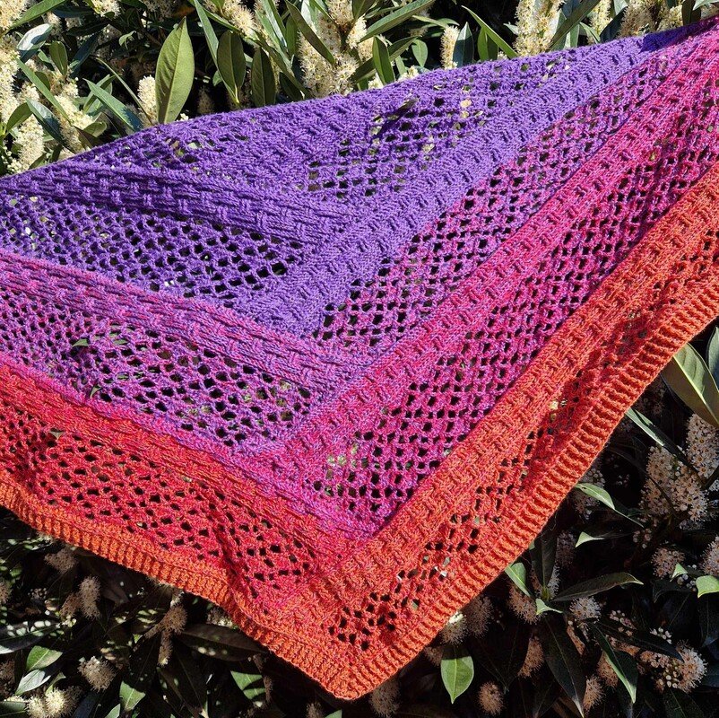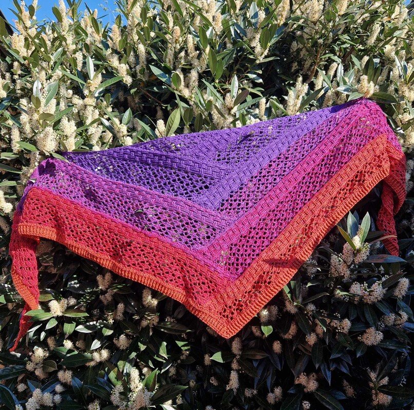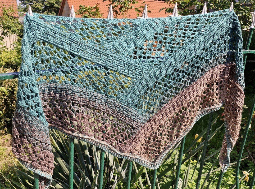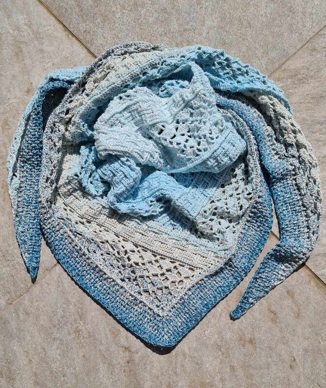 Styx ist ein wundervolles, luftig lockeres Dreieckstuch aus der Reihe der "Tücher mit dem Dreh", diesesmal ein flaches Dreieckstuch. Das Tuch wird in Blöcken gehäkelt, in regelmäßigen Abständen wird das Tuch um 90 Grad gedreht. Die Reihen sind dadurch kurz, und es kommt keine Langeweile auf!