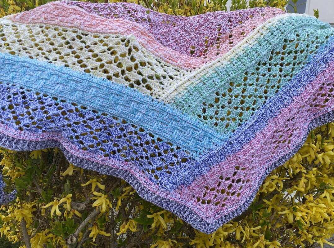 Das Tuch kann in jeder beliebigen Größe gehäkelt werden, da sich die Reihen wiederholen.