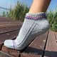 Sneakersocken Lazise bestechen durch ihr dekoratives Bündchen. Der Rest der Sneakersocken ist schlicht gehalten, nur kurz vor der Spitze wird das Muster nochmals aufgegriffen.