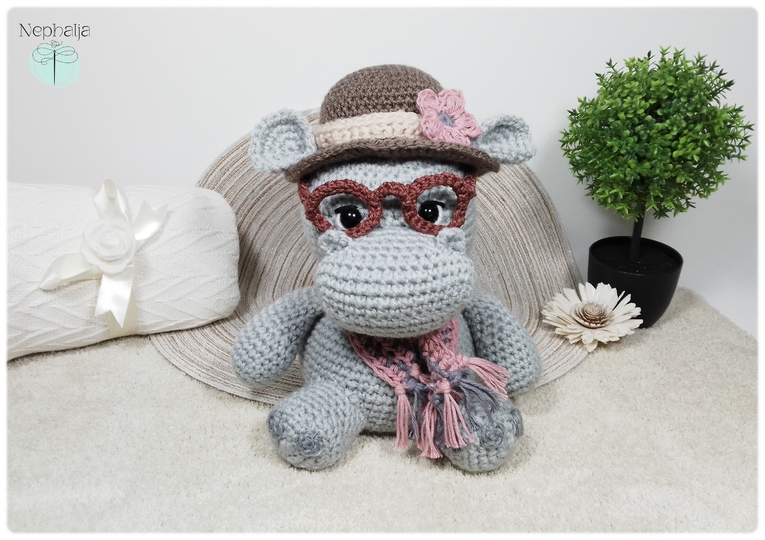 Als Hilfestellung bekommst du dazu hier eine detailreiche Häkelanleitung, die dich auf 28 Seiten durch die Erstellung von Inspektorin Rosalinda führt – einem einzigartigen Amigurumi in Form eines charmanten Nilpferds mit Hut, Brille und Schal. Diese Anleitung ist mit über 110 hochwertigen Bildern ausgestattet, um jeden Schritt klar und präzise zu veranschaulichen.