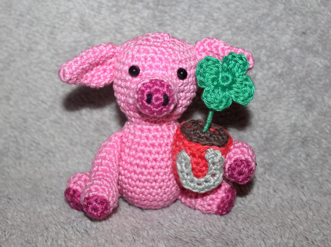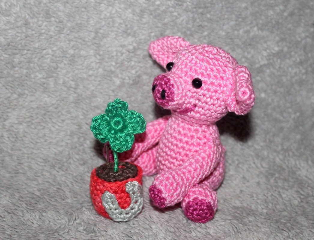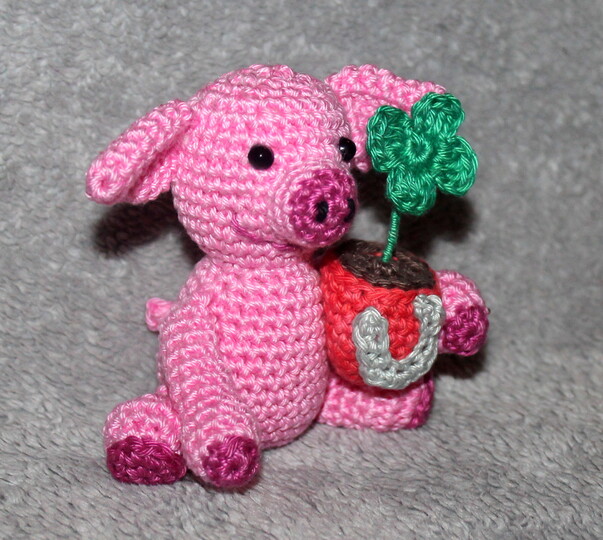Das Schweinchen ist fertig gehäkelt und sitzend ca 10 cm groß.