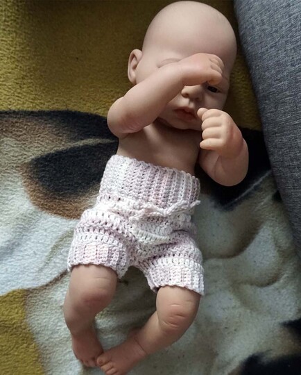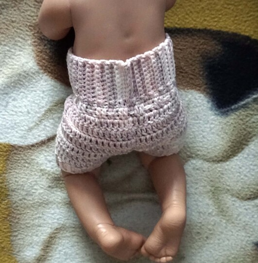 Die fertige Hose passt einer gängigen Babypuppe mit ca. 29cm Bauchumfang.