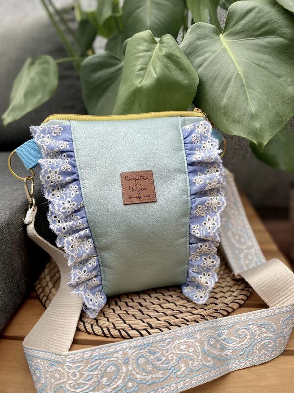 Magnolia ist ein süßes kleines Täschchen, welches durch die Teilung, welche du mit Rüschen nähen kannst es zu einen echten Hingucker werden lässt.