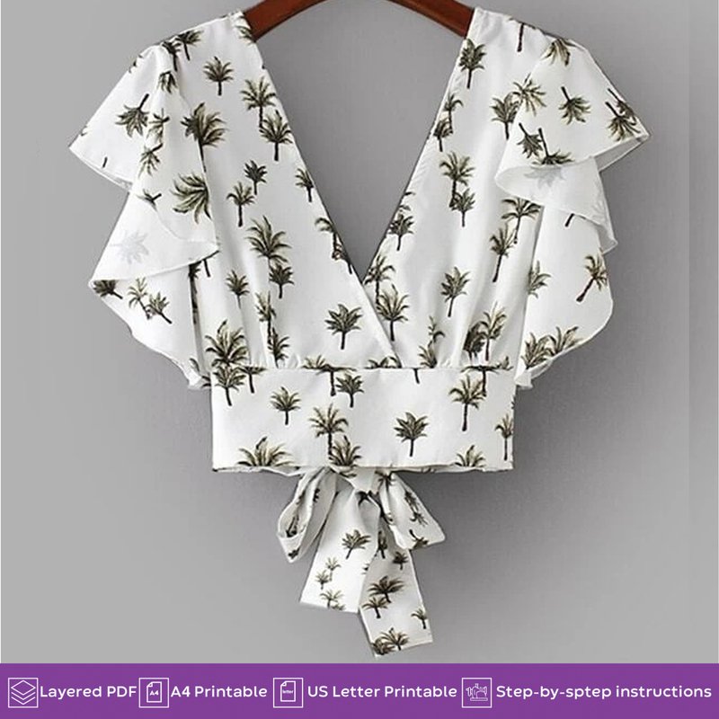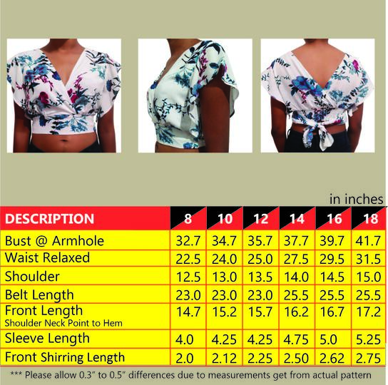 Tie Back Crop Blouse PDF Sewing Pattern is 8,10,12,14,16 & 18 for instant download. See the size chart in the gallery to choose your correct size. - If you are having any issues, please contact me. Make it out of your outdoor fashion, summer party, or any other occasion - choose a suitable Printed Cotton, Linen, Printed Polyester fabric or similar fabric for this dress. Click to shop now...!!