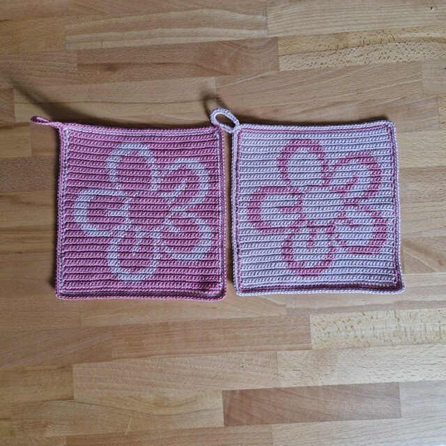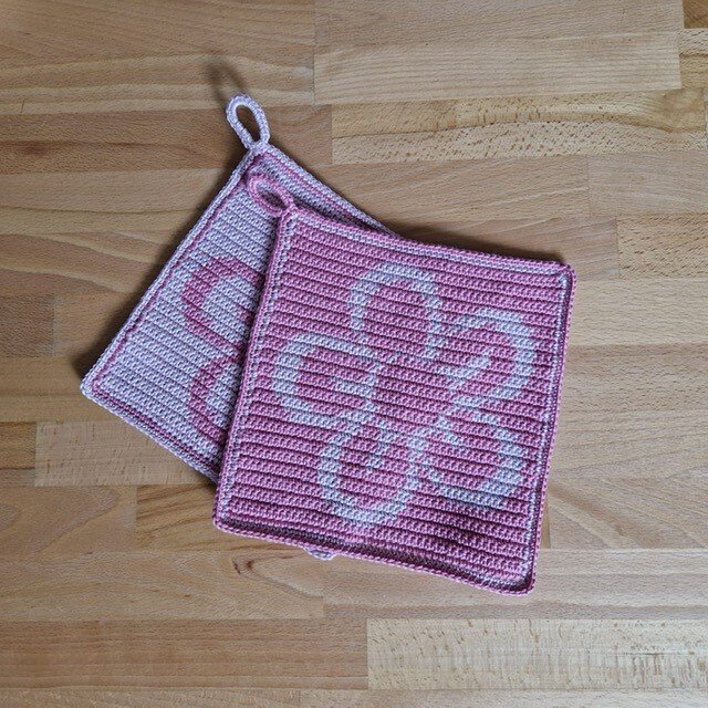 Diese Topflappen sind der Klassiker unter den gehäkelten Topflappen. Sie schützen die Hände nicht nur vor z.B. zu heißen Topfgriffen, sondern sie verschönern auch jede Küche. Gleichzeitig können sie auch als Untersetzer verwendet werden.