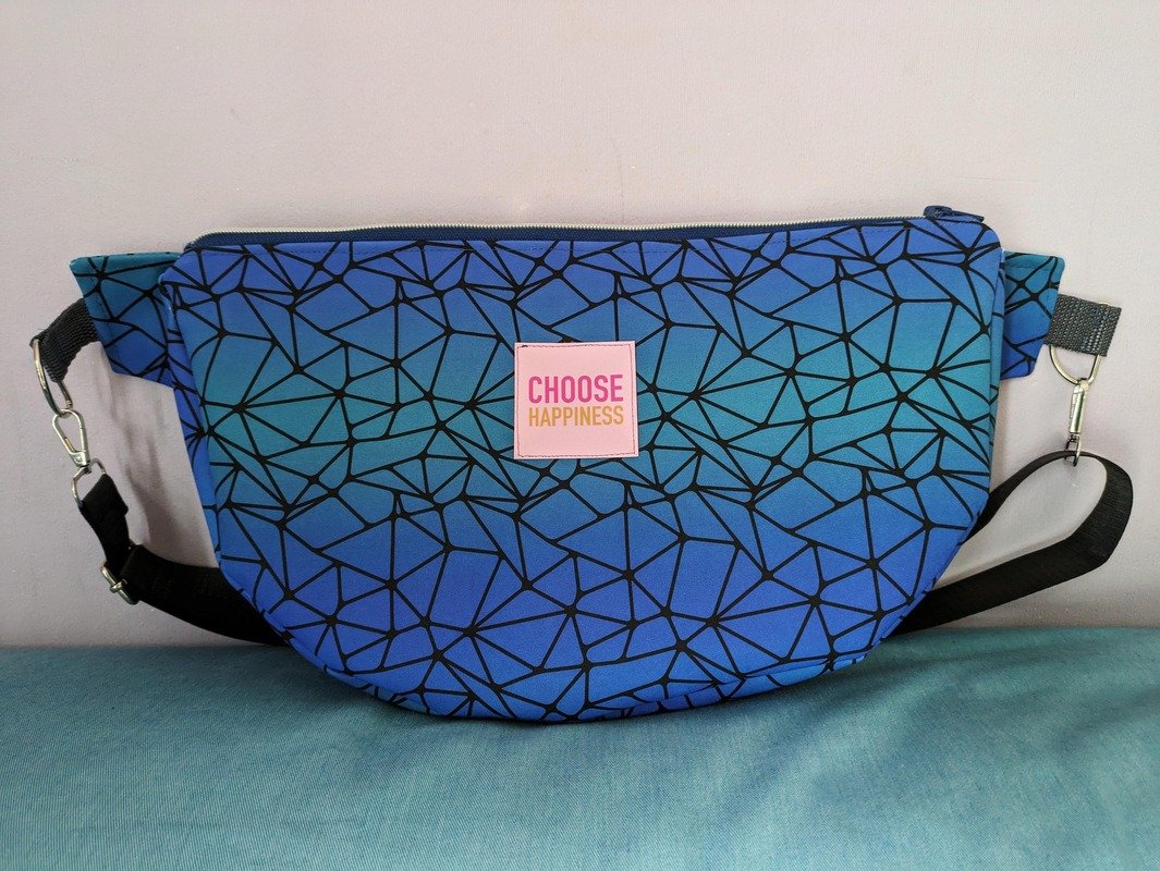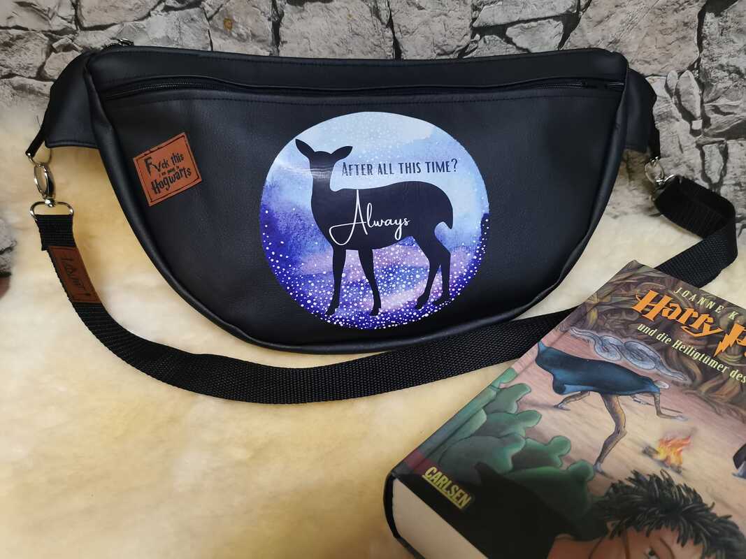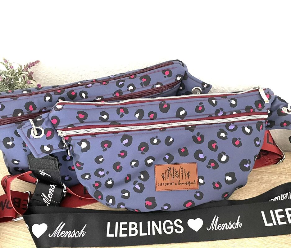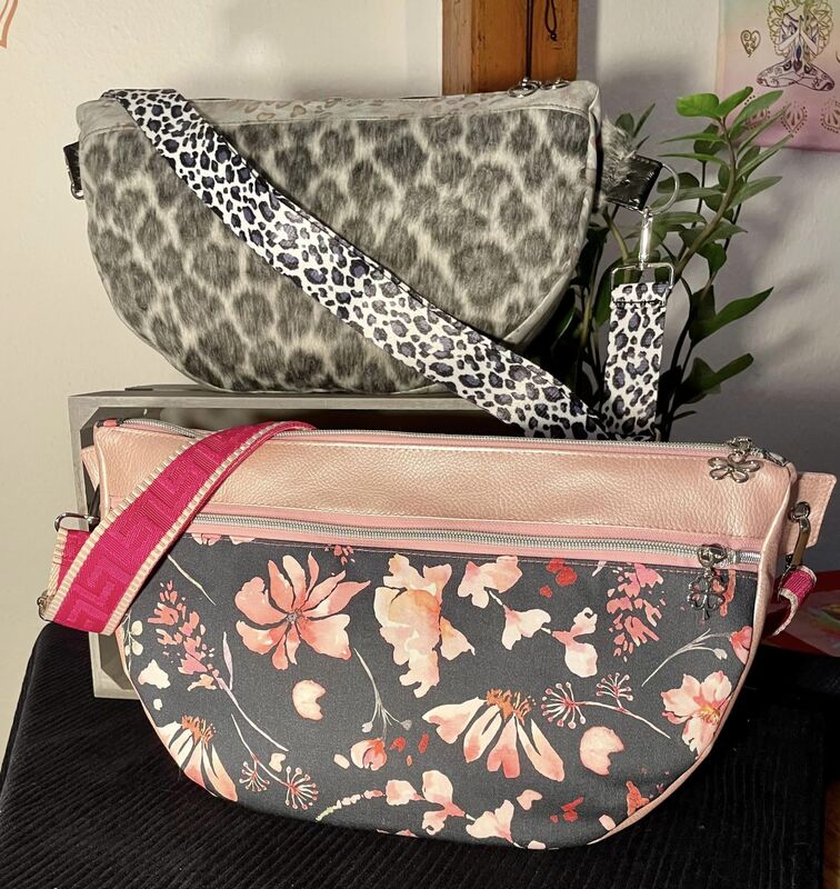 „Kingcup“ ist mit seinen Maßen von 38 x 24 x 8 cm eine etwas größere Bauchtasche, die natürlich auch Cross body getragen werden kann. Die Außentasche kann schlicht gehalten werden, mit einer Teilung gearbeitet oder mit einer weiteren großen Reißverschlusstasche veredelt werden. Für Stauraum im Inneren kannst du ein weiteres RV-Fach und/oder ein Steckfach einarbeiten.