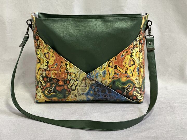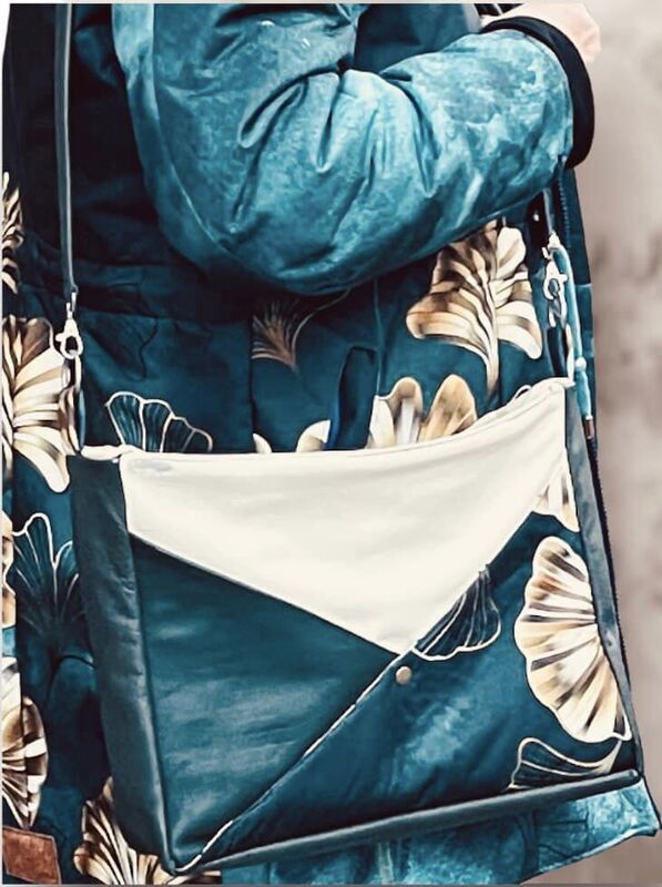 Impatiens ist eine etwas Größere Tasche, deren Hingucker die Vorderseite mit den raffinierten Einteilungen ist, die du gleichfalls noch als Fächer verwenden kannst. Sie hat eine Größe von 30 cm Höhe und 35 cm Breite.