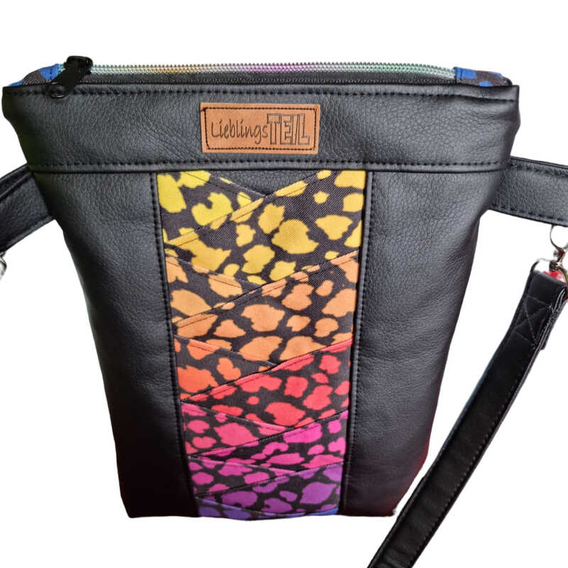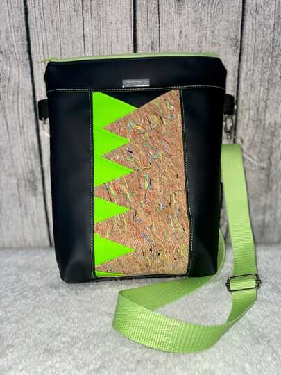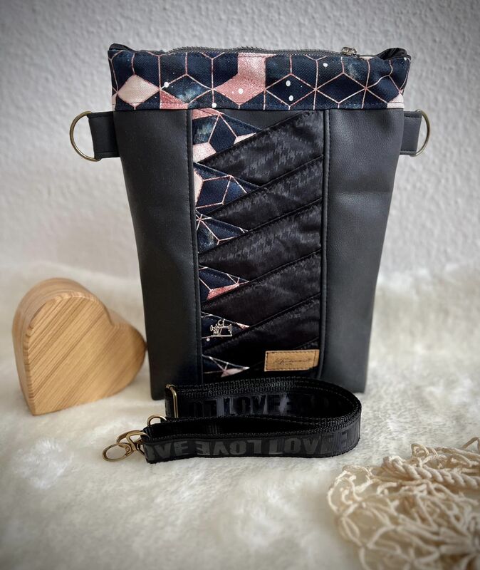 Die Tasche wird mittels RV geschlossen. Du kannst optional in die Innentasche Steckfächer und/oder RV Fächer anbringen. Ebenso kannst du auf die Taschenrückseite auch noch ein RV-Fach einbauen, ganz nach deinen Wünschen.