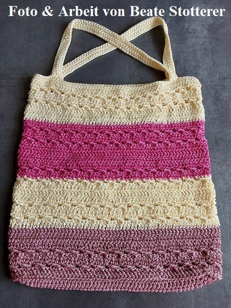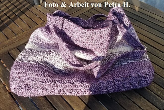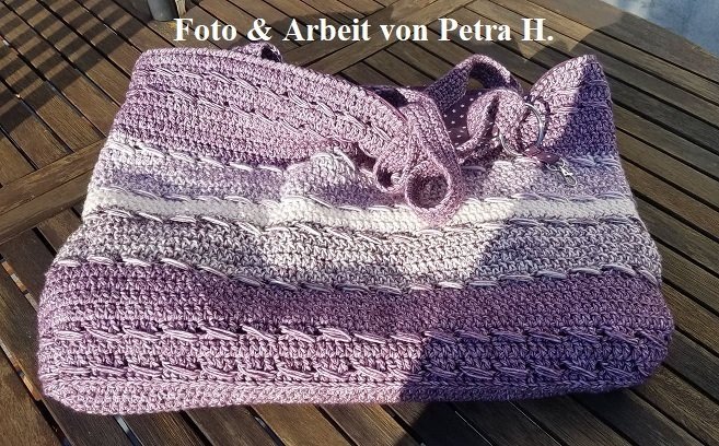 Z.B. ... Mit 40 Luftmaschen im Anschlag ist sie ca. 38cm lang x 30cm hoch x 7cm breit.