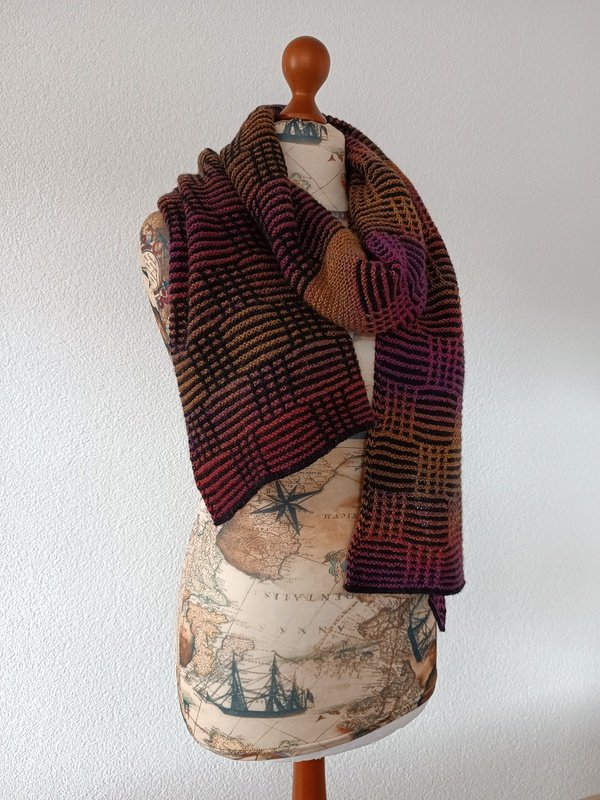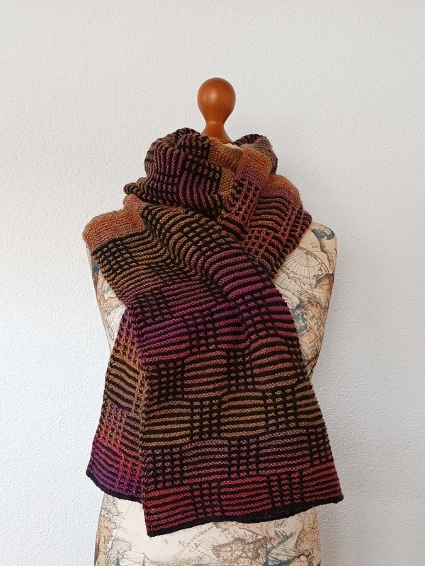 Der Schal wird kraus rechts gestrickt und besteht nur aus rechten und abgehobenen Maschen.