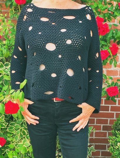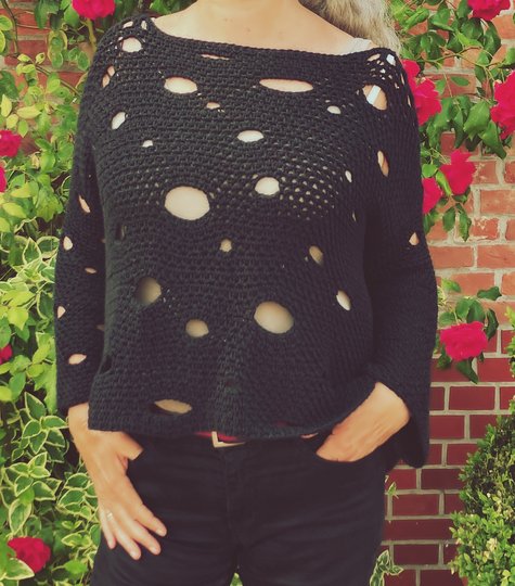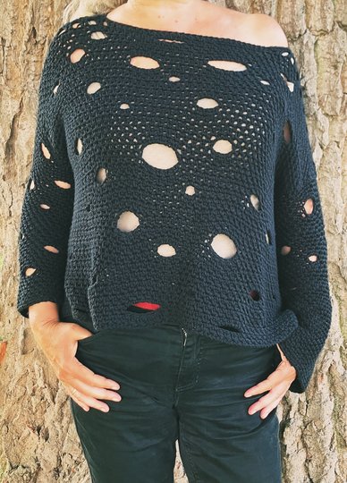 Ich zeige in dieser Anleitung auch, wie man einen solchen Lochpullover stricken kann.