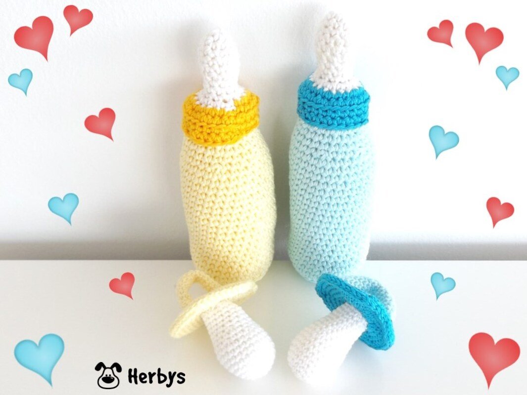 Die Häkelanleitung für die Milchflasche und den Schnuller besteht aus 6 Seiten und über 10 Bildern, sowie eine genaue Schritt für Schritt - Beschreibung (PDF-Datei). Häkelkenntnisse (LM, fM, KM) sollten allerdings vorhanden sein.
