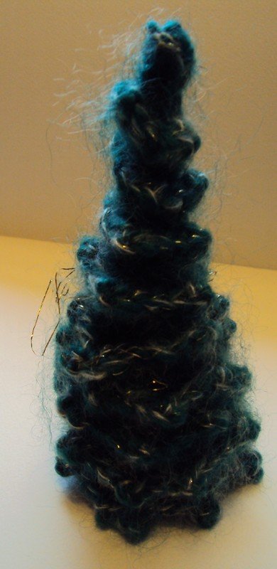 Diese beiden Weinachtsbäume schaffen Sie noch bis Weihnachten. Mit Nadelstärke 5 sind sie in wenigen Stunden gehäkelt. Bei der Ausschmückung können Sie Ihrer Phantasie freien Lauf lassen. Ein schönes Geschenk oder auch als liebevolle Verpackung für ein kleines Geschenk geeignet, denn die Tannenbäume sind nicht gefüllt. Besonders schön sehen ganz viele Tannenbäume als Deko für den Tisch oder die Fensterbank aus.Verwendet wurde ein Mohairgarn. Der kleine Baum ist zusätzlich mit weißen Mohairgarn und Glitzer geschmückt.