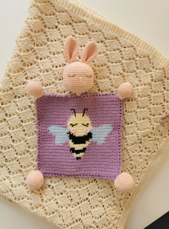 Fertige Größe: 31 cm wenn mit Scheepjes Catona, Drops Loves You #9 und Drops Loves You #7 Wolle und 2,5 mm Häkelnadel gehäkelt.