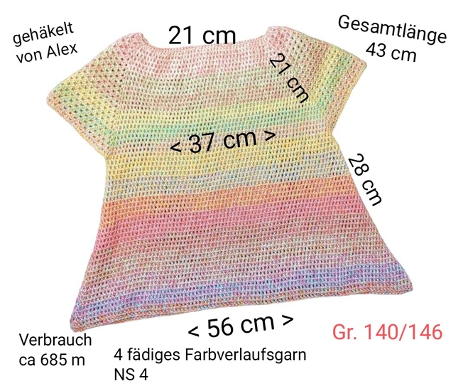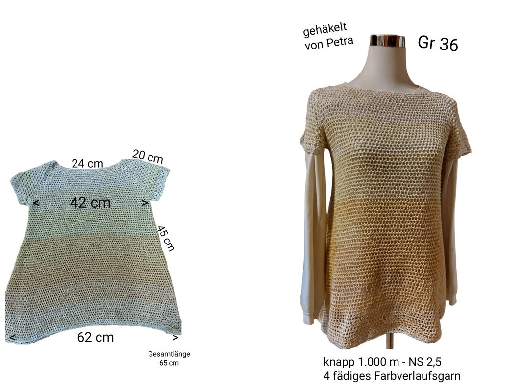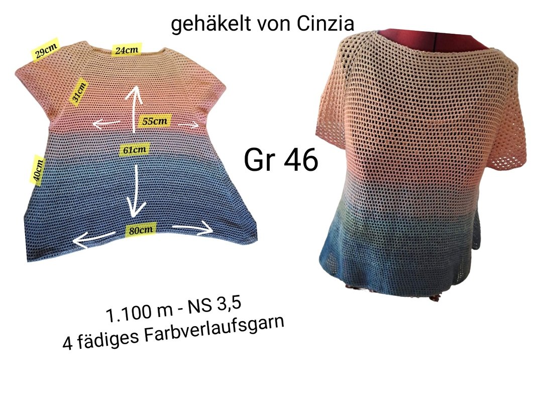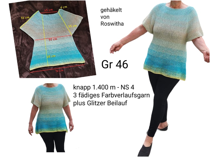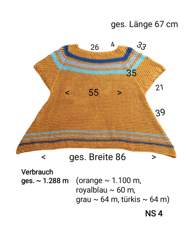 Das Shirt auf dem Titelbild (ca Gr. 42/44) hat eine Brustweite von 55 cm und eine