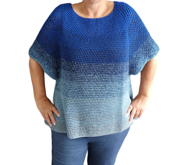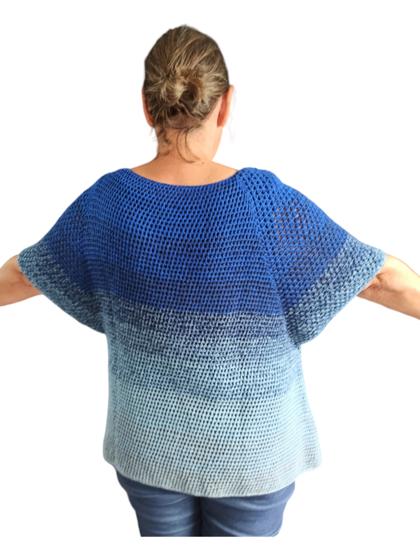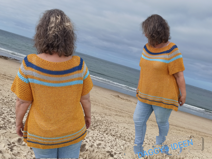 besteht aus zwei luftigen Mustern und wird nach unten ausgestellt gearbeitet (was aber nicht sein muss, wenn Ihr es lieber gerade häkeln möchtet). Es spricht allerdings auch nichts dagegen es in den anderen Jahreszeiten als Pullunder zu tragen.
