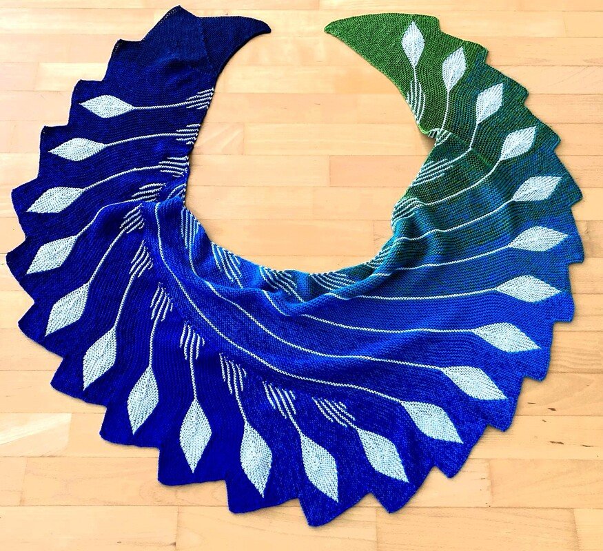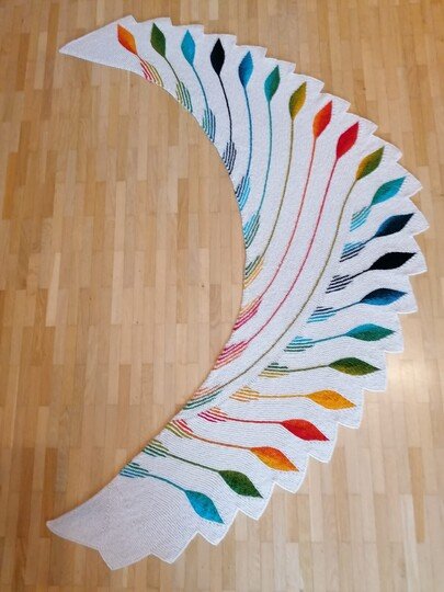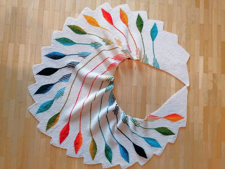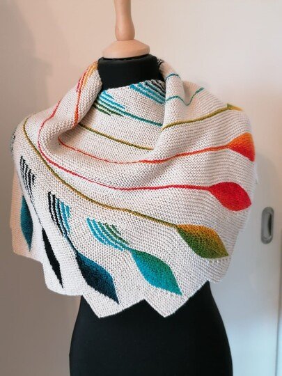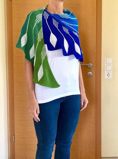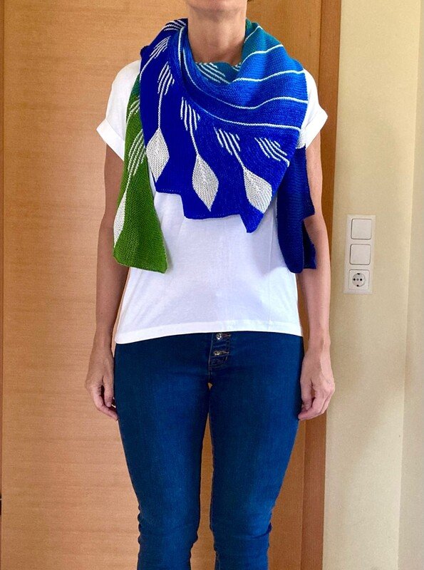 Du kannst natürlich auch so wie eine meiner Test Strickerinnen statt der Uni Farbe eine Verlaufswolle nehmen und die Blätter in Uni einstricken.