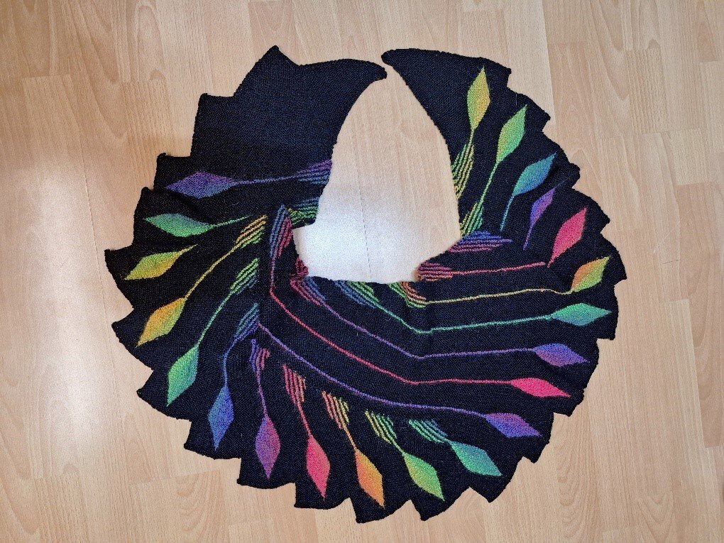 Es ist ein kleineres Tuch in der Art von einem Drachenschwanz Tuch.