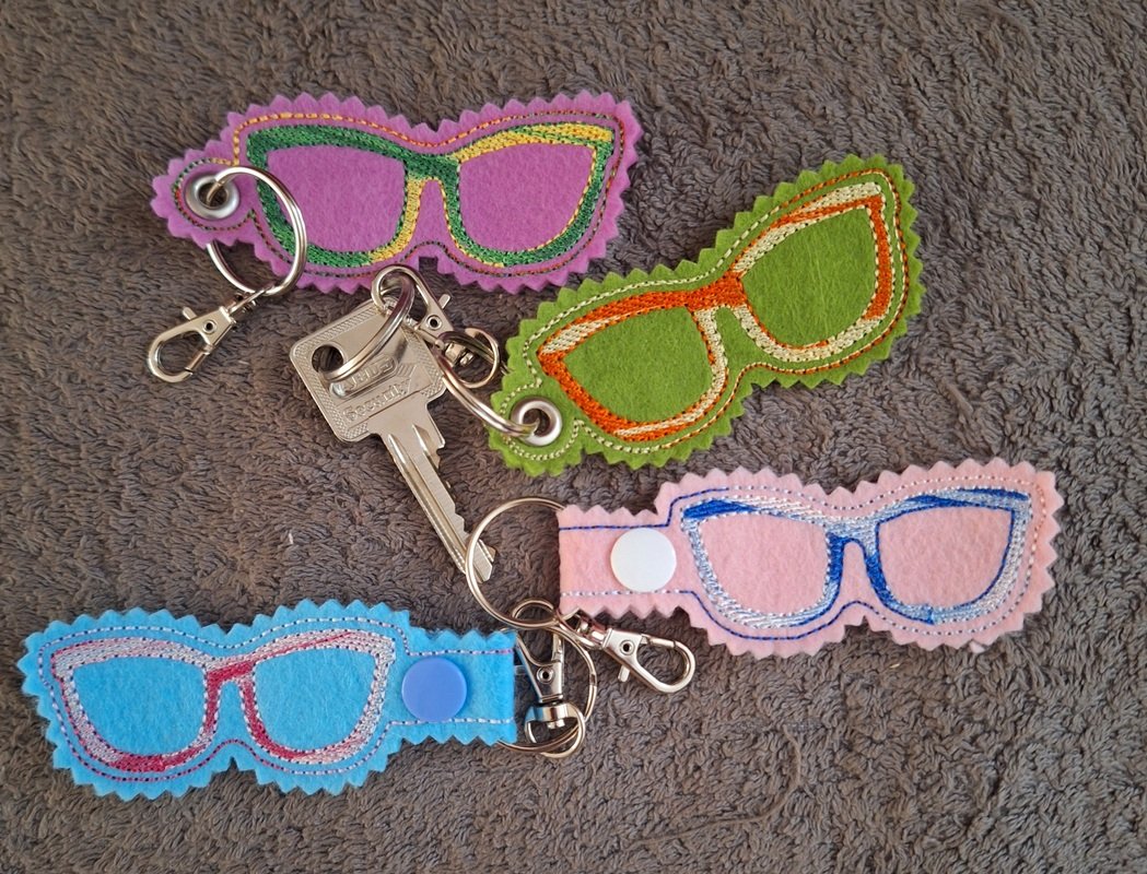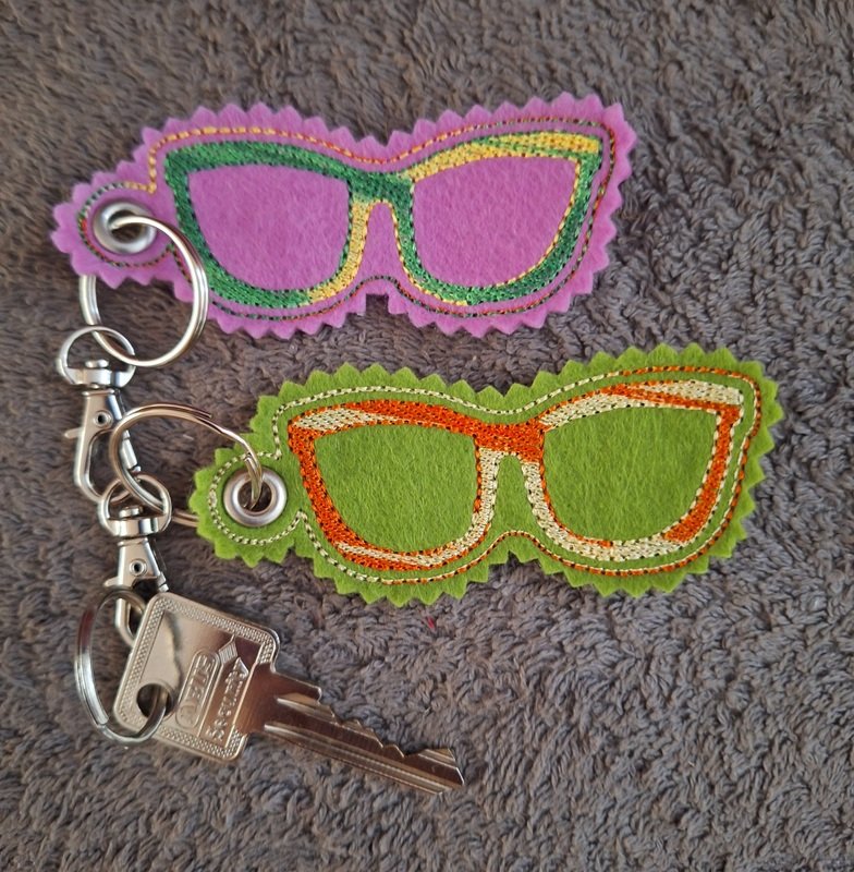 Stickdatei ITH Schlüsselanhänger mit Sonnenbrille, ein cooler Anhänger an Badetaschen, Taschen, Beutel, Schlüssel.