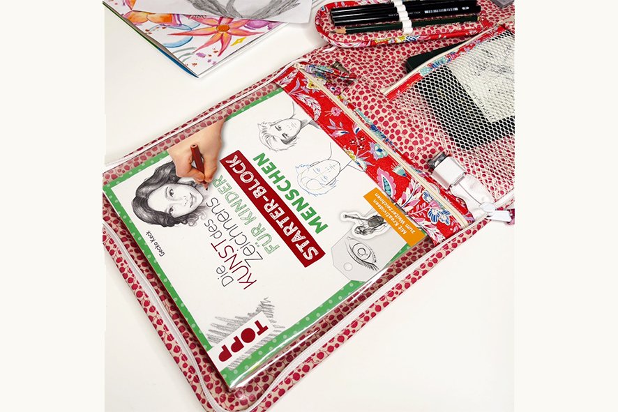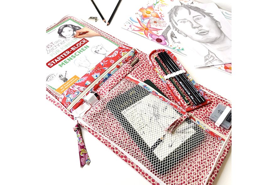 Für die Stiftemappe hast Du zwei Optionen: Du kannst diese für Bleistifte, Pinsel und dünnes Zubehör erstellen, oder auch für dickere Stifte und Accessoires. Oder Du erstellst einfach zwei Stücke davon, denn es geht so schnell! So wechselt Du sie aus, je nach gewünschter Anwendung Deiner Mappe!
