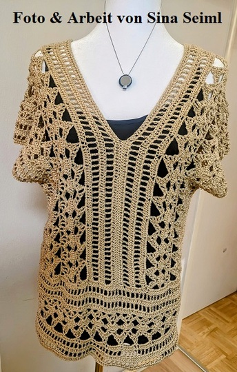 Mit dem Shirt kommt die Freude auf den Sommer. Nicht körperbetont sondern so richtig lässig getragen, ist es auch ideal für den Strand. Das Shirt kann in jeder Größe gearbeitet werden.