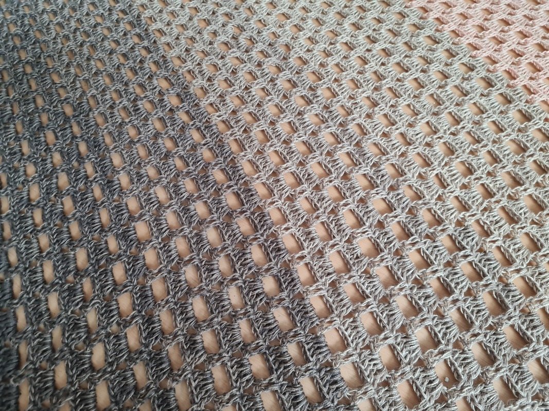 Ich wollte ein Tuch entwerfen, das groß genug ist, um mir an kühlen Sommerabenden die Schultern und den Rücken zu wärmen. Gleichzeitig sollte es der Jahreszeit entsprechend schön luftig sein.