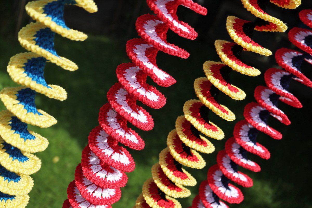 Das Windspiel ist bei der Häkelanleitung in 2 Varianten beschrieben, damit du es in Länder- oder Vereins-Farben gestalten kannst.