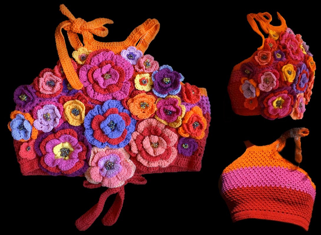 Dieses auffällige Top besticht durch die Verzierung mit Blüten und ist sicherlich ein Eyecatcher.