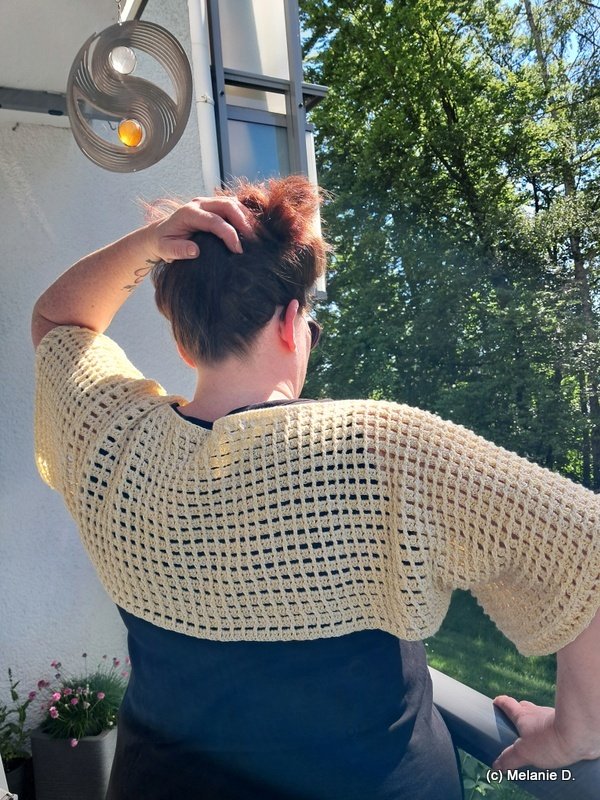 Du kannst dir einen bauchfreien Bolero machen, oder aber auch einen Pullover, der Bauch und Hüften umschmeichelt, ein Kleid, oder ein T-Shirt-. Hier ist einfach wieder alles möglich und bietet viel kreative Freiheit :) Garida ist das perfekte Wohlfühl-Teil.